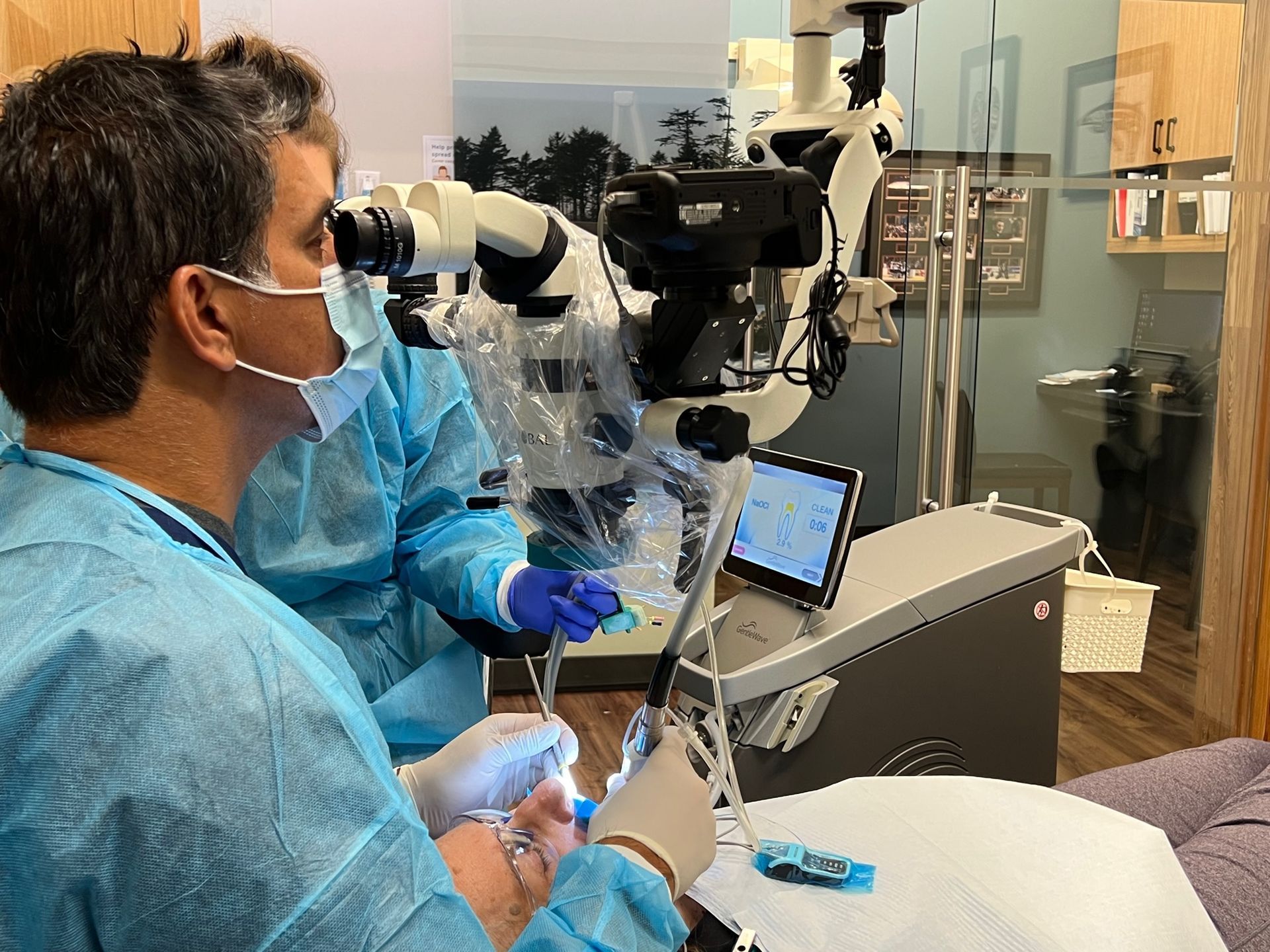 This advanced optical technology allows for the precise identification of canal orifices, minute fractures, and complex root canal anatomy that might otherwise be overlooked with the naked eye. By enhancing visibility, the DOM significantly increases the precision of each procedure, from diagnosis to the completion of treatment, improving thorough cleaning, shaping, and sealing of the root canals. The microscope is also provides superior lighting and ergonomic to more predictably restore badly broken down teeth. This precision not only improves outcomes but also helps us preserve more of the natural tooth structure, promoting healing and longer-lasting results. It also allows us to operate in ergonomic positions so that we are not tired and can provide everyone with quality care, even at the end of the day.